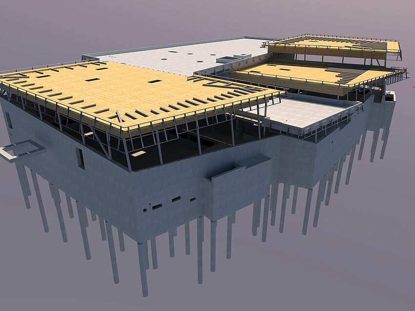 BIMPLUS ist das Herzstück des digitalen Projektdatenmanagements. Die Projektbeteiligten bilden über die BIM-Plattform kollaborative Teams und haben Zugang zu den neuesten Plänen und Modellen, egal ob sie sich im Büro oder im Außendienst befinden. BIMPLUS bietet weitere Funktionen, um Fehler zu vermeiden. Das integrierte Solibri-Plug-in erkennt automatisch Konstruktionsfehler in BIM-Modellen. Mit der Mengenermittlung können Materialbestellungen, wie etwa Betonlieferungen, auf der Baustelle gegengeprüft werden. Ein professionelles Issue Management sorgt für Sicherheit und Transparenz, damit keine Aufgabe untergeht, keine Planungsfehler und Baumängel unbearbeitet bleiben und fehlerbedingte Kostenrisiken minimiert werden. Die 2D-Overlay-Funktion in BIMPLUS visualisiert 2D-Pläne innerhalb des 3D-Modells und erleichtert es, Pläne und Modelle konsistent zu halten. Diese Kopplung von Spitzentechnologien erhöht nicht nur die Genauigkeit in der Entwurfs- und Planungsphase, sondern fördert auch ein kollaboratives und effizientes Projektumfeld.