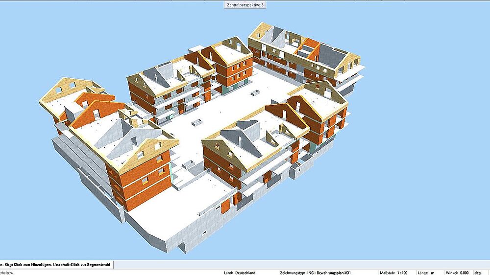 The local engineering firm concon was commissioned with the structural design, building envelope and performance design, and execution planning for the Vierseithof. The BIM project was based on an architectural model created in Archicad by the firm Guggenbichler + Wagenstaller, which the engineers used as a reference to model their own structural engineering discipline model in ALLPLAN. According to Florian Lindner, managing partner at concon, this model served as a basis for the formwork and reinforcement planning, for the development of the sound and fire protection plans, and for energy consulting throughout the project. It was also essential for producing a verifiable structural analysis.
