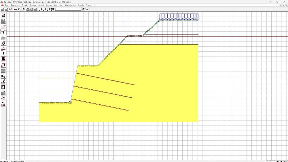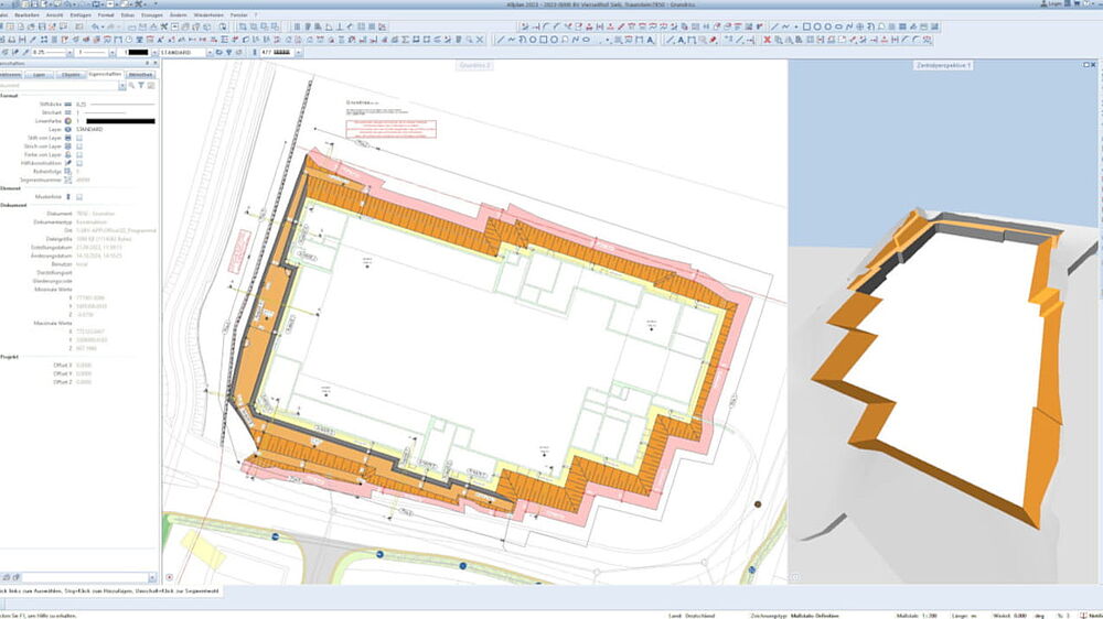 In fact, ALLPLAN and FRILO were used in tandem twice on the Vierseithof project. The responsible company, GSGE GmbH, also created the excavation support plan as a 3D model in ALLPLAN. This model was used not only for deriving quantities, but also as the basis for later calculations of the excavation slope’s stability using ALLPLAN’s DC-Software.