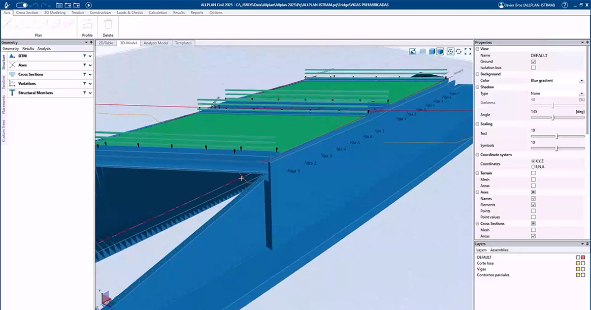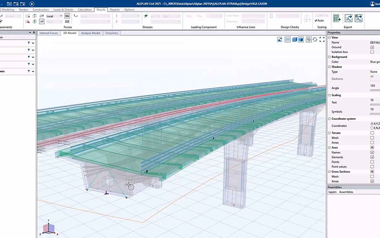 This bidirectional workflow ensured that models remained accurate, and that each software environment could play to its strengths – ISTRAM for corridor definition and road geometry; ALLPLAN Civil for structure modeling, reinforcement, and analysis.