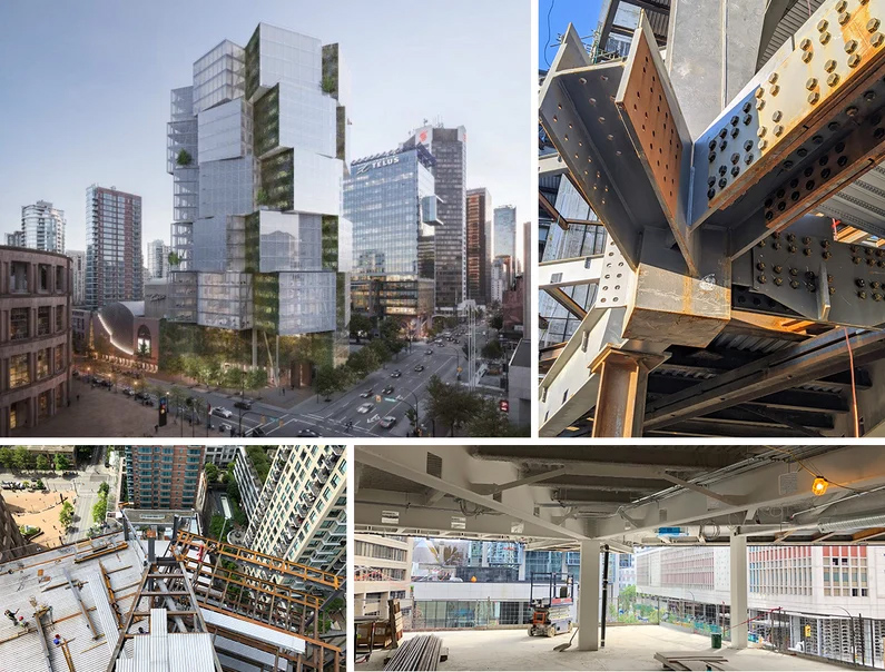 The 400 West Georgia project, located in an evolving district in Vancouver, British Columbia, Canada was detailed, fabricated, and erected by Supermetal Structures, Inc.
