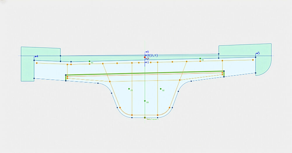 Die Achsen der Pfeiler wurden im Grundriss gedreht, woraus sich eine variierende Geometrie der Träger ergab. Für den Hauptquerschnitt definierten Harrer Ingenieure Randlinien und Arbeitsfugen sowie Hauptbewehrungsgruppen samt entsprechender Python-Parts für die automatische Bewehrungsgenerierung in ALLPLAN Engineering. Die parametrische Modellierung erlaubte eine präzise Abbildung der Geometrie und bildete damit die Grundlage für eine möglichst exakte statische Berechnung und Bemessung. Gleichsam konnten temporäre und permanente Auflager einfach konfiguriert werden. Bei den Spanngliedern, die aufgrund der sich ändernden Trägerformen jeweils eigene Geometrien aufweisen, erfolgte die Materialdefinition manuell nach statischen Anforderungen. Auf diese Weise ließen sich sowohl Fertigteile als auch der Verbundzustand berechnen und unterschiedliche Spannvorgänge berücksichtigen.