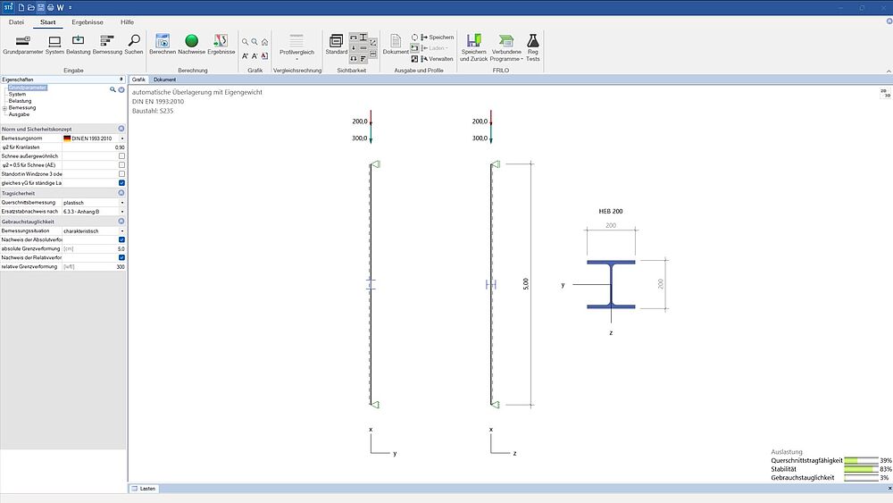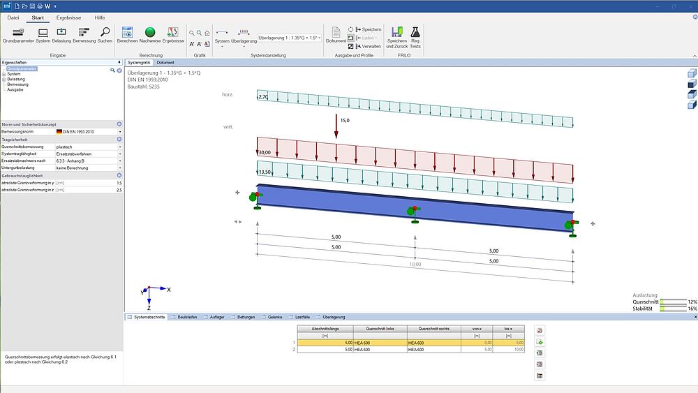 > Prüffähigkeit und Plausibilität – Die Berechnungsergebnisse sind klar strukturiert und sehr gut nachvollziehbar. Jeder Nachweis bezieht sich eindeutig auf ein Bauteil, wodurch sich eine besonders übersichtliche, plausible und prüffähige Statik für alle Beteiligten – vom Planer bis zum Prüfingenieur – aufstellen und dokumentieren lässt.