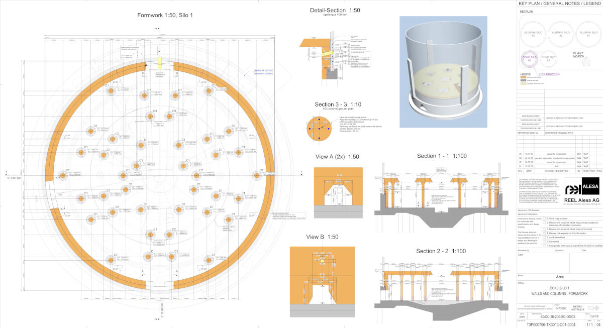 Ort des Geschehens ist ein Aluminiumwerk der Schweizer REEL Alesa AG mitten in der Wüste. Hier galt es im Rahmen einer Modernisierung des Werks zwei Silos instand zu setzen, die der Lagerung und dem Umschlag von Kohle und Aluminiumoxid dienten. Gleichsam sollte eine neue Abgasreinigungsanlage entstehen. Die Baumaßnahmen erforderten unter anderem einen Teilabbruch der beiden Silos mit anschließendem Neubau, um die Anforderungen des Bauherrn zu erfüllen.