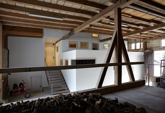 Souverän und schnörkellos wurden in dem alten Gemäuer 150 Quadratmeter Raum zum Wohnen, Arbeiten und Spielen geschaffen. Weitere 400 QuadratmeterWohnreserven können noch ausgebaut werden – aktuell lagert hier noch Brennholz. Das Erdgeschoss ist zudem barrierefrei ausbaubar. Anja Klingers „Scheunenhaus“ wächst nicht nur mit, es wurde wegen seines architektonischen und energetischen Standards sogar mit dem Award der KfW-Förderbank 2015 ausgezeichnet.
